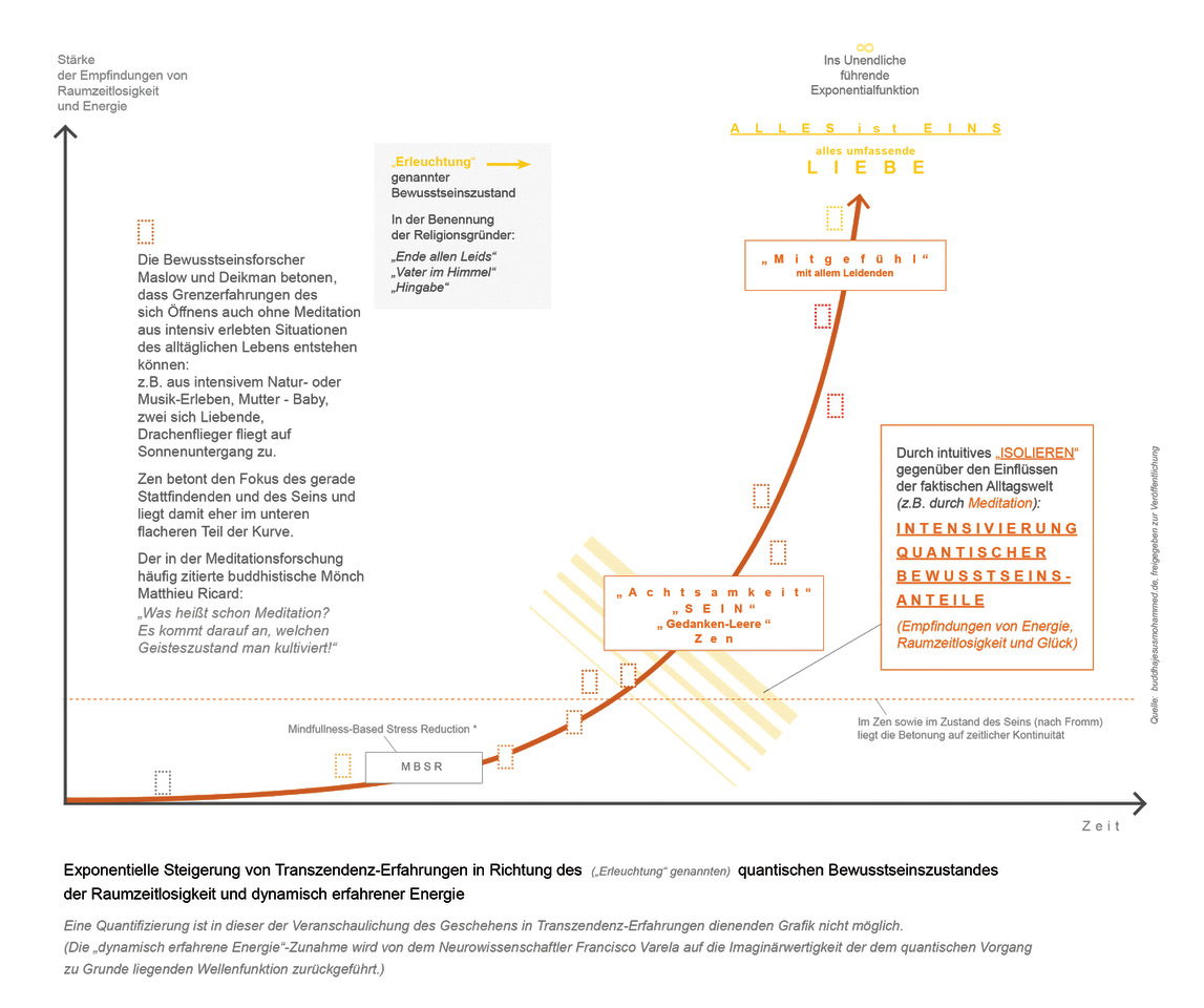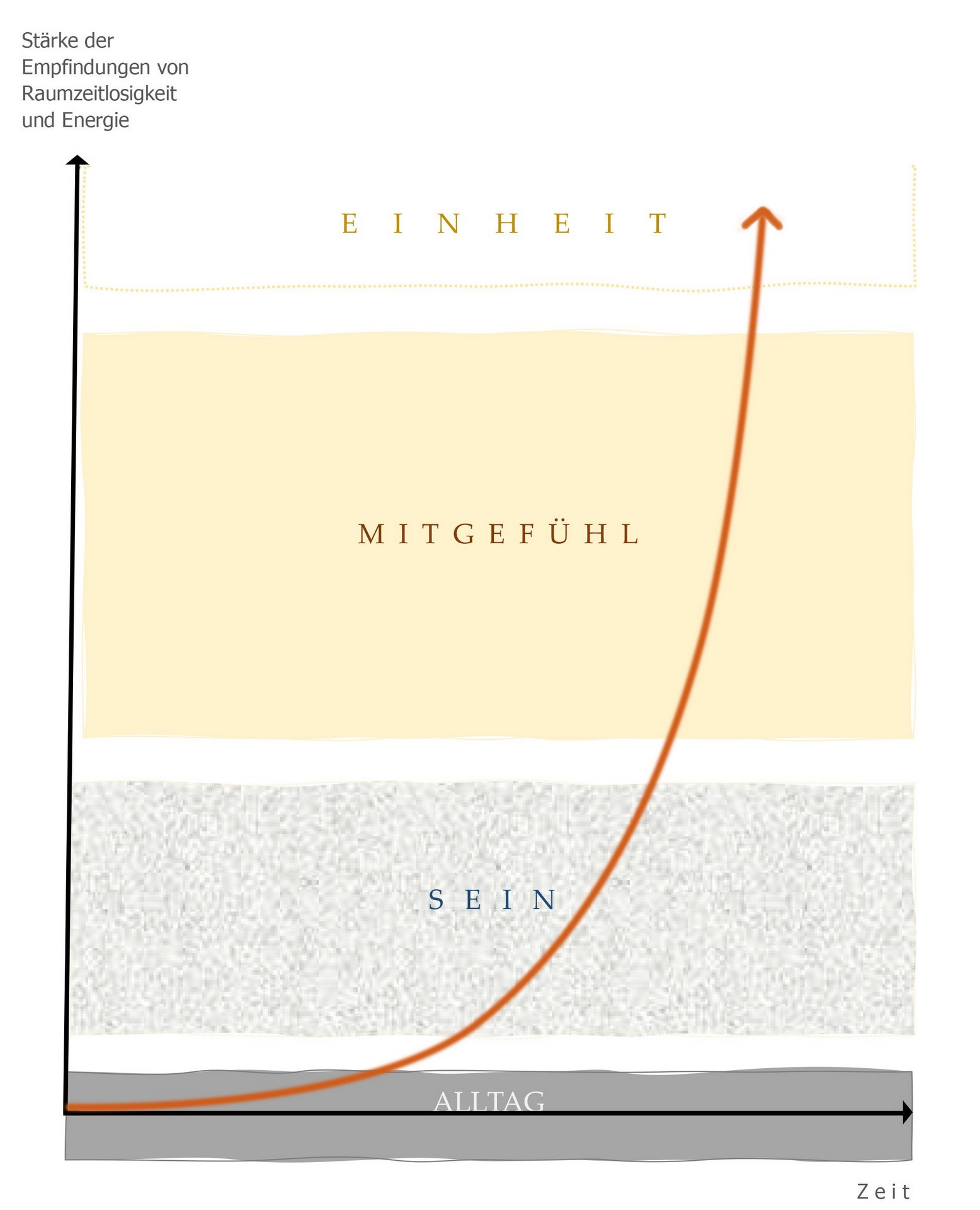 In dieser Darstellung wird deutlich, dass die Übergänge zwischen ihnen einer grafisch darstellbaren Entwicklung folgen, die als Exponentialfunktion bezeichnet wird. Dabei fällt dann in unserem die Spiritualität berührenden Zusammenhang auf, dass Exponentialfunktionen mathematisch ins Unendliche führen ...